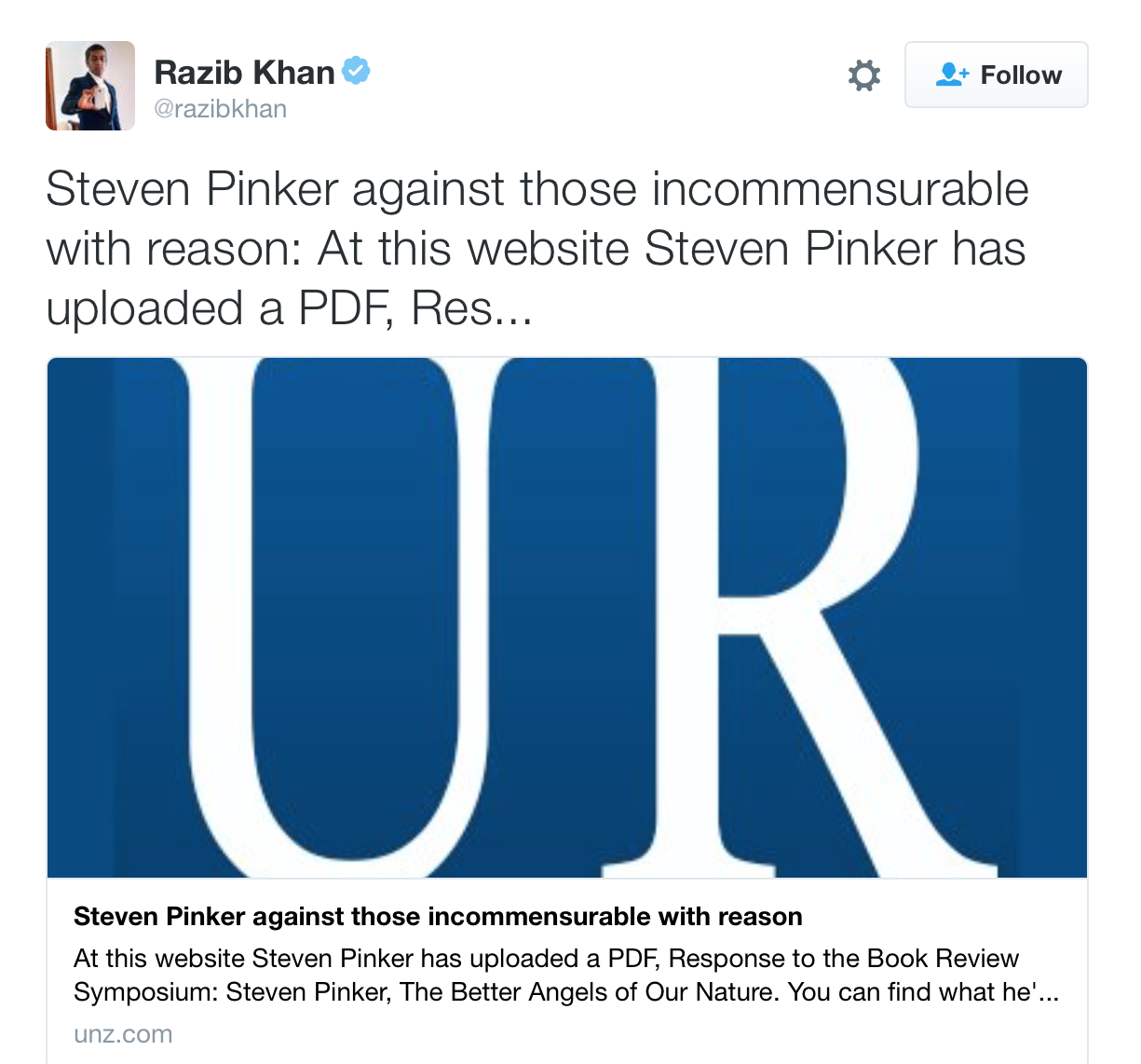 More love from Pinker to Khan on Twitter.